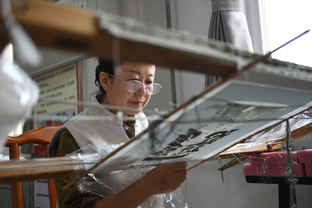 2025年9月8日,陕西千阳绣娘王白燕正在西秦刺绣文明财产园内乱刺绣。陕西千阳县是邦家级非物资文明遗产“西秦刺绣”的紧张发源地战传启天。近些年去,千阳县将西秦刺绣行为帮农删支的紧张财产,推进非遗名目财产化成长,帮力村落健壮。