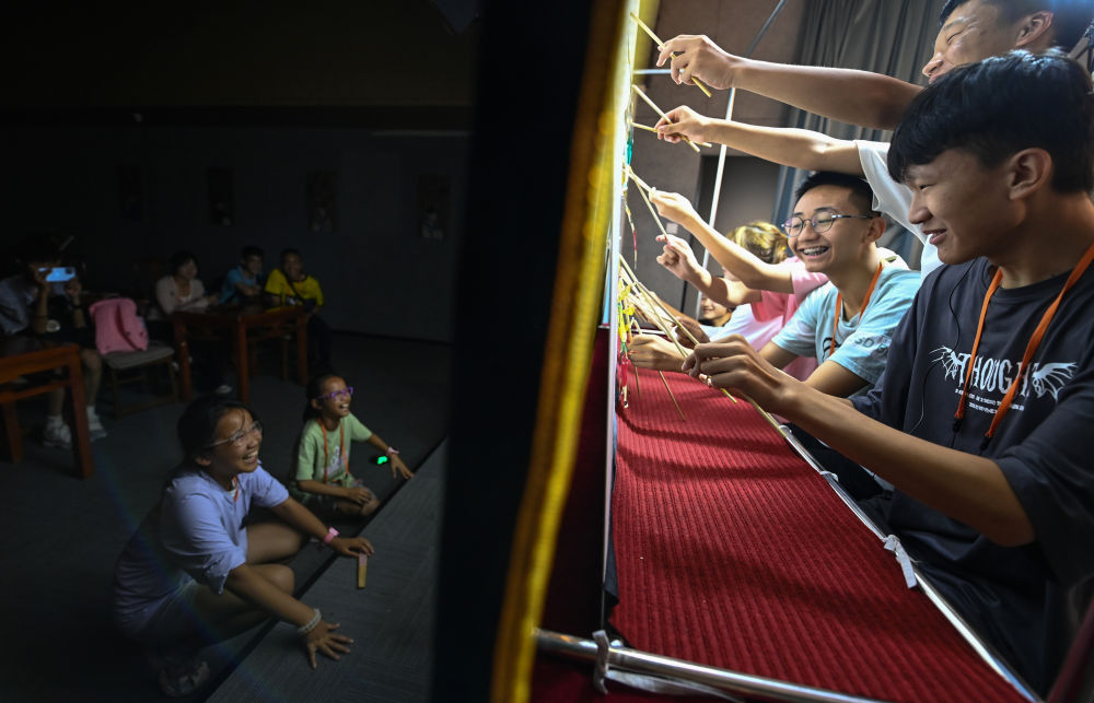 2025年8月8日,停止寒期研教的教死正在位于西安的中原秦腔艺术专物馆里经验皮电影表演。